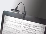 Tehokas T-Model LED-nuottivalo tuottaa erittäin kirkkaan valon kahdeksalla tehokkaalla ledillä. Kahden eri kirkkaustason ja säädettävän joutsenkaulan ansiosta T-Model sopii hyvin tilanteeseen kuin tilanteeseen. Leveä leukakiinnike (jopa 25 mm) kiinnittyy tukevasti nuottitelineisiin, pöytälevyihin jne. Valaisin toimii kolmella AAA-paristolla jopa 10 tuntia yhtä jaksoisesti. Lampun mukana tulee kestävä kantolaukku.