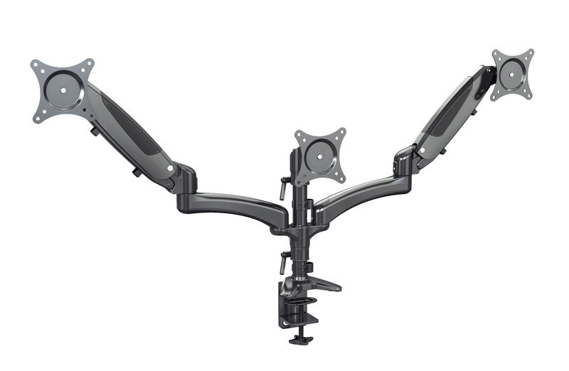 Tyylikäs kiinnitysratkaisu työtilaasi. Tällä pöytäkiinnikkeellä voit sijoittaa enintään kolme 24" kokoista näyttöä tilaa säästävällä ja ergonomisella tavalla. Telineen vankka alumiinirakenne kestää 8kg:n kuorman (per aisa) ja on varustettu kaasujousella. Kiinnitysalusta on suunniteltu VESA-kokoihin 75/75 ja 100/100. Korkeussäätö on portaattomasti säädettävissä 160mm asti. Vakaan puristinkiinnittimen ansiosta teline voidaan kiinnittää jopa 60mm paksuun tasaiseen pintaan. Näyttöä voidaan kallistaa, kääntää ja pyörittää äärettömästi, mikä takaa täydellisen katselumukavuuden ja parantaa työasentoa. Integroitu kaapelinhallinta varmistaa siistin ja ammattimaisen työtilan.
