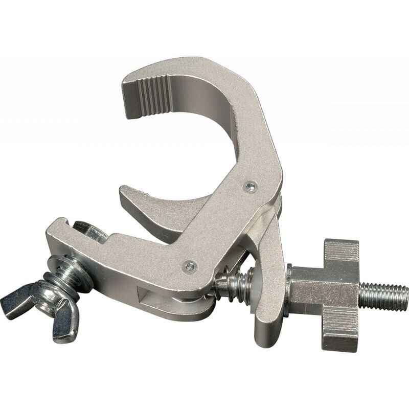 This clamp is intended for both temporary and permanent setups and is used to secure lighting and other stage equipment in various rigging systems. It is TÜV certified and meets safety requirements for professional use.